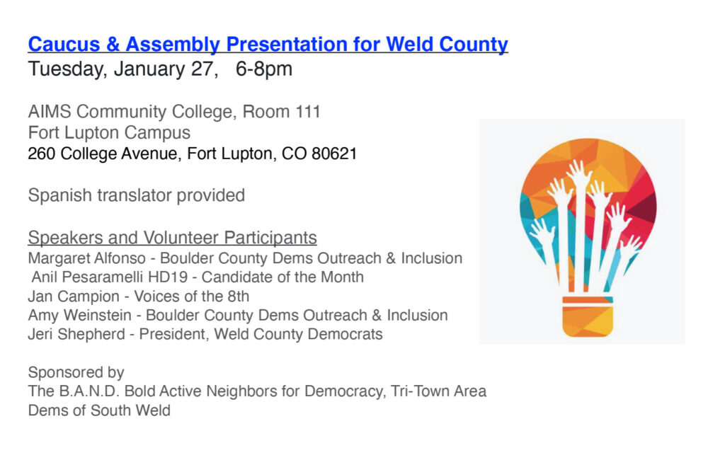 Parte 2 Presentadora: Jeri Shepherd, presidenta del Partido Demócrata del Condado de Weld